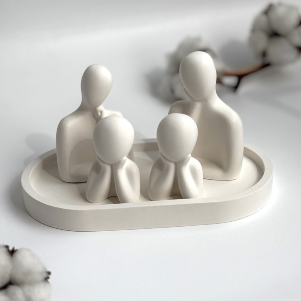 Ve své základní podobě je sousoší tvořeno třemi postavami - maminkou, tatínkem a dítětem. Sestavu si můžete doplnit o další děti, nebo přidat i tácek, na kterém postavy obvláště vyniknou. Na zakázku je možné vytvořit i zcela jinou, jedinečnou sestavu, přesně podle vašich představ.