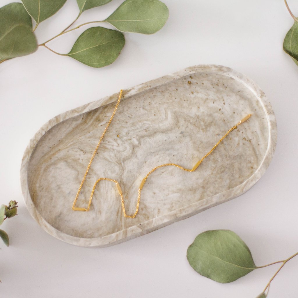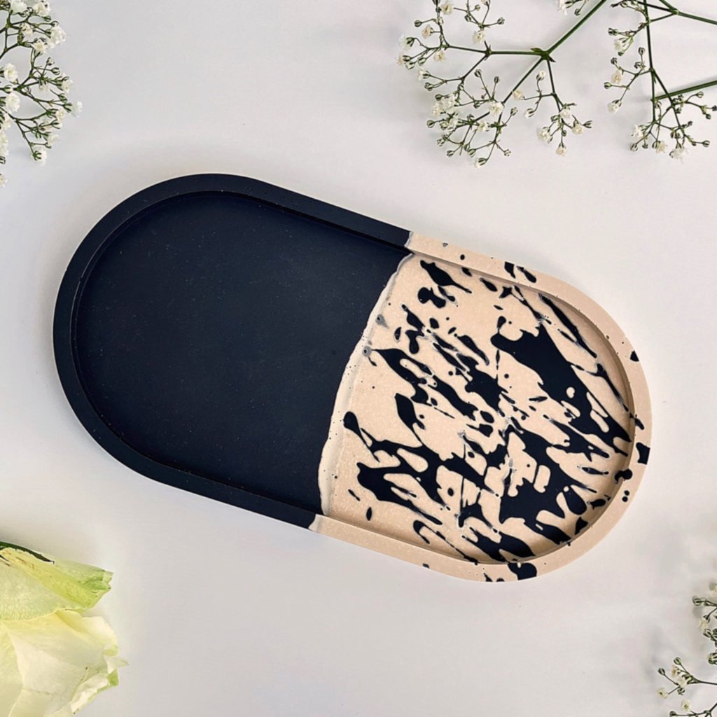 Nejpouživanější je tento tácek na kávu nebo čaj. Ale představivosti se meze nekladou. Dá se využít i na nočním stolku na odkládání šperků, na komodu pod svíčku nebo třeba na botník na odkládání klíčů. Jde skvěle kombinovat s nejrůznějšími doplňky z mé kolekce Jesmonite, například se svícny nebo s dózami. Nechte se unést svou představivostí a udělejte si radost nebo obdarujte někoho blízkého.