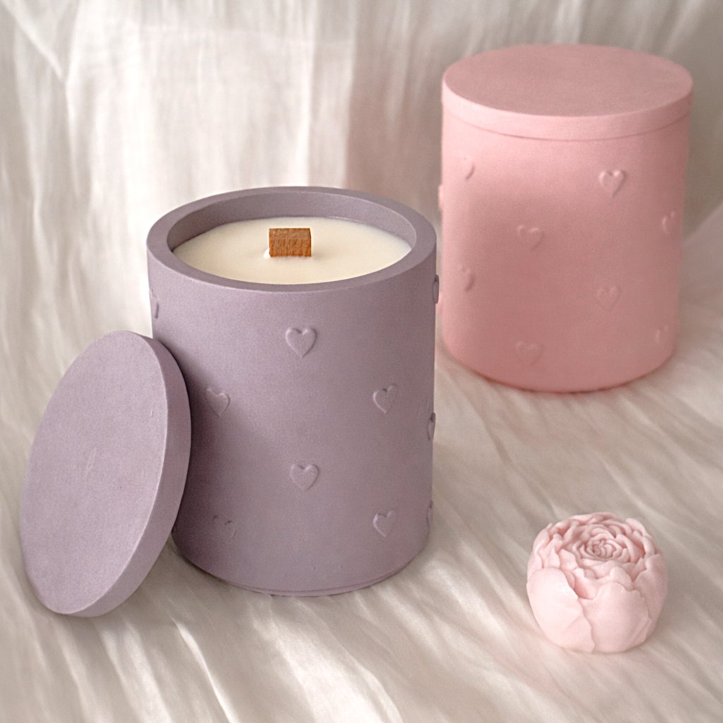Ručně litá sójová svíčka v dóze z jesmonitu, která spojuje minimalistický design s jemnou romantikou. Matný povrch dózy zdobí decentní plastická srdíčka, díky nimž působí něžně, ale stále elegantně a nadčasově.