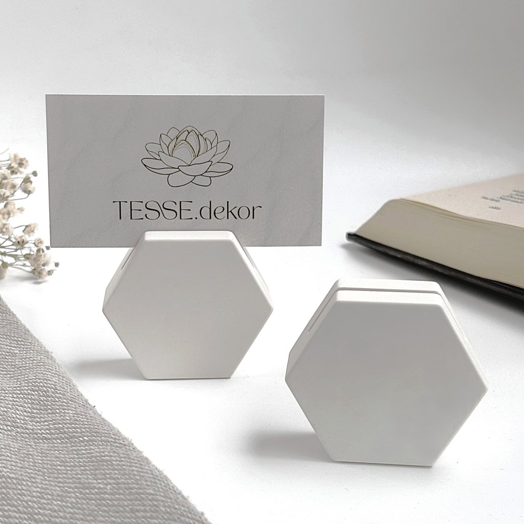 Dodejte svému pracovnímu stolu nebo domácnosti nádech elegance a moderního designu s tímto stylovým stojanem ve tvaru hexagonu. Jeho minimalistický vzhled dokonale spojuje funkčnost a estetiku, díky čemuž je ideální pro držení vizitek, jmenovek, fotografií nebo malých poznámek. Vyroben z pevného materiálu, poskytuje stabilní základnu pro vystavení vašich oblíbených obrázků nebo udržení důležitých kontaktů na dosah. Perfektní doplněk jak do osobního, tak pracovního prostředí, ale zároveň slouží jako unikátní dekorace i praktický pomocník.
