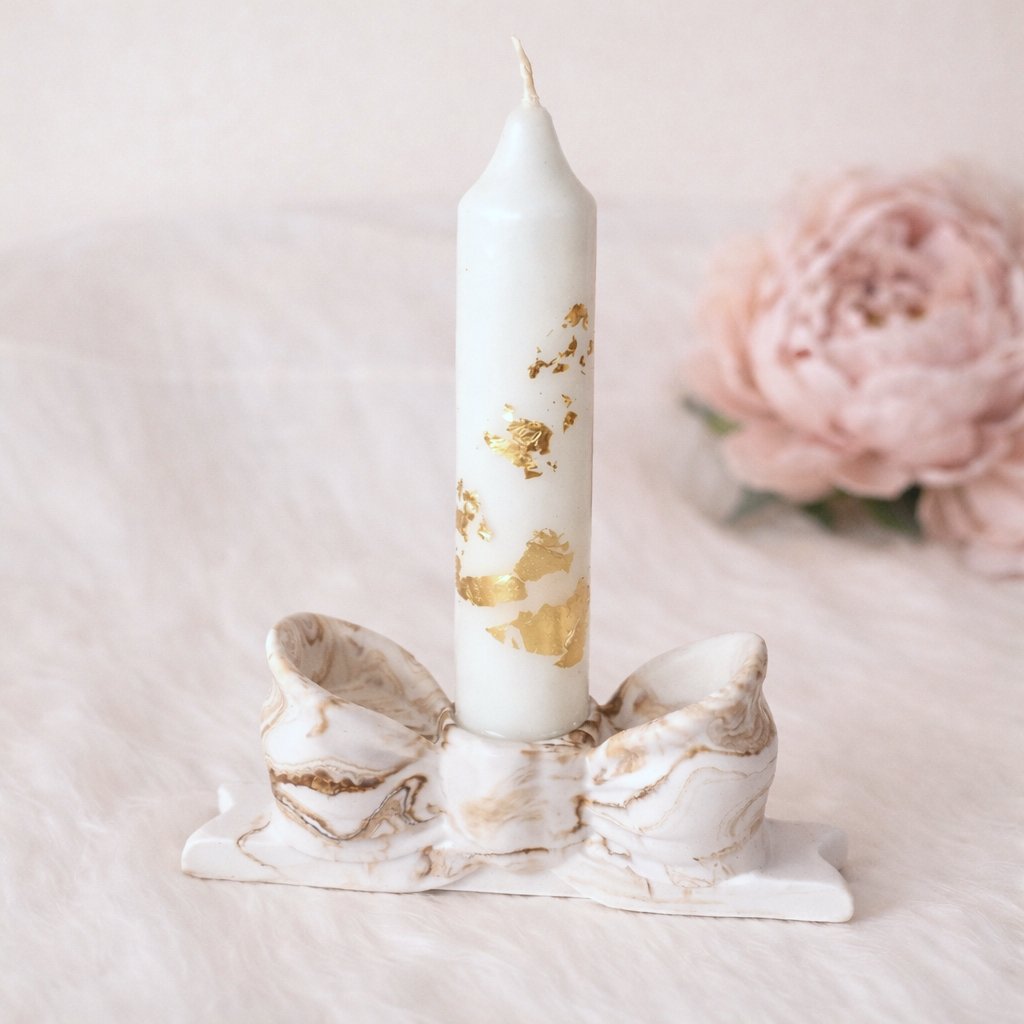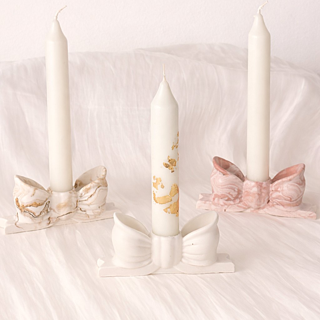 Ručně vyrobený svícen z kvalitního jesmonitu v podobě elegantní mašle je stvořen pro všechny, kteří milují klidný, čistý design s osobitým detailem. Matný povrch a organické linie materiálu dodávají každému kusu přirozenou krásu. Působí nadčasově - tak, aby nepřehlušil prostor, ale jemně ho dotvořil.