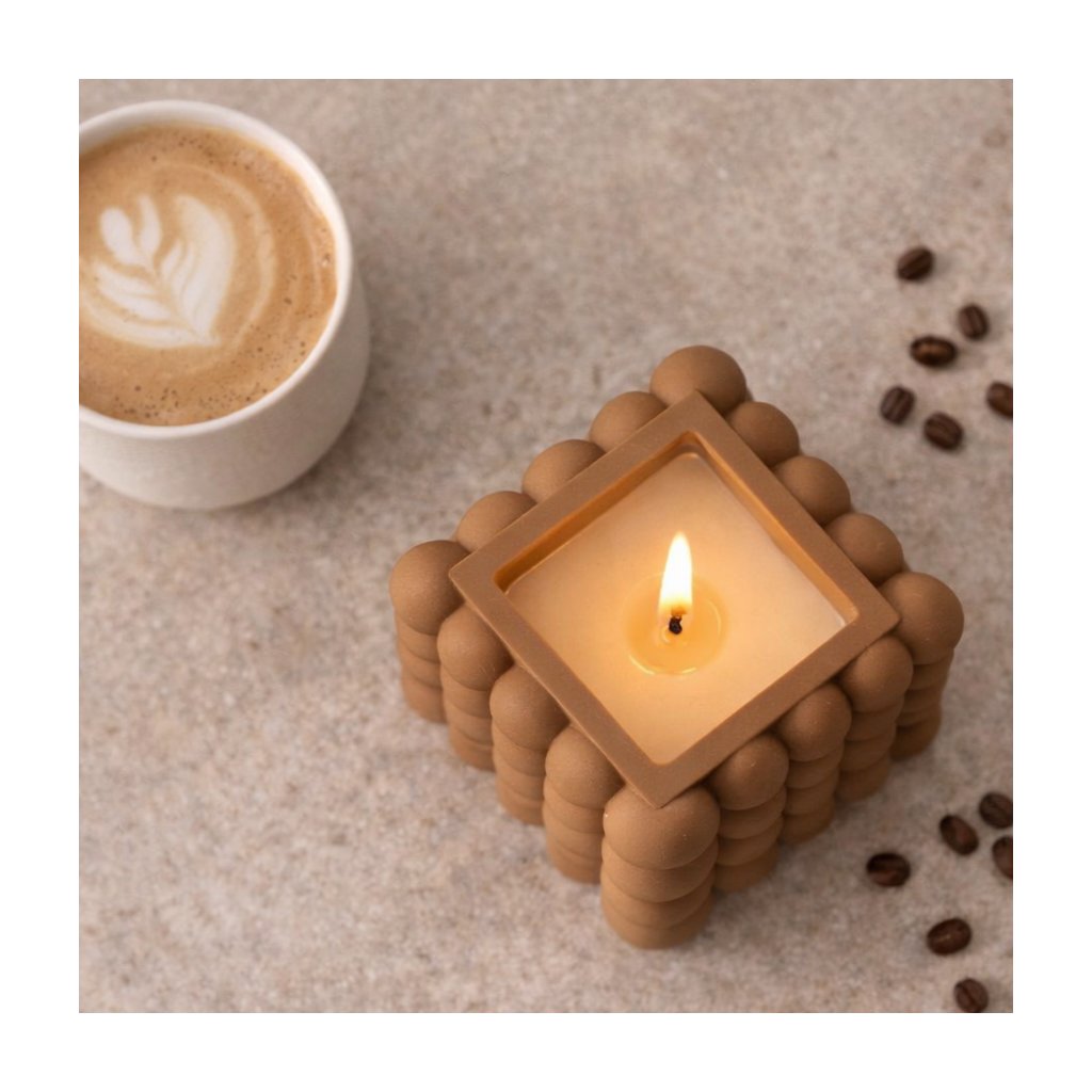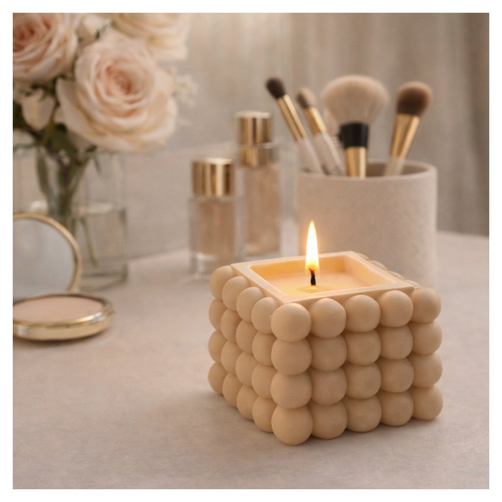 Cloud Cube je jedinečná svíčka s kokosovým voskem v ručně vyráběné dóze z jesmonitu, která v sobě spojuje design, jemnost, klid a ruční práci. Bublinková struktura dózy působí měkce, moderně a nadčasově. Matný povrch a přírodní tóny v kontrastu s teplým plamenem kokosového vosku zútulní každý interiér a vytváří pocit domova, elegance a lehkého luxusu.