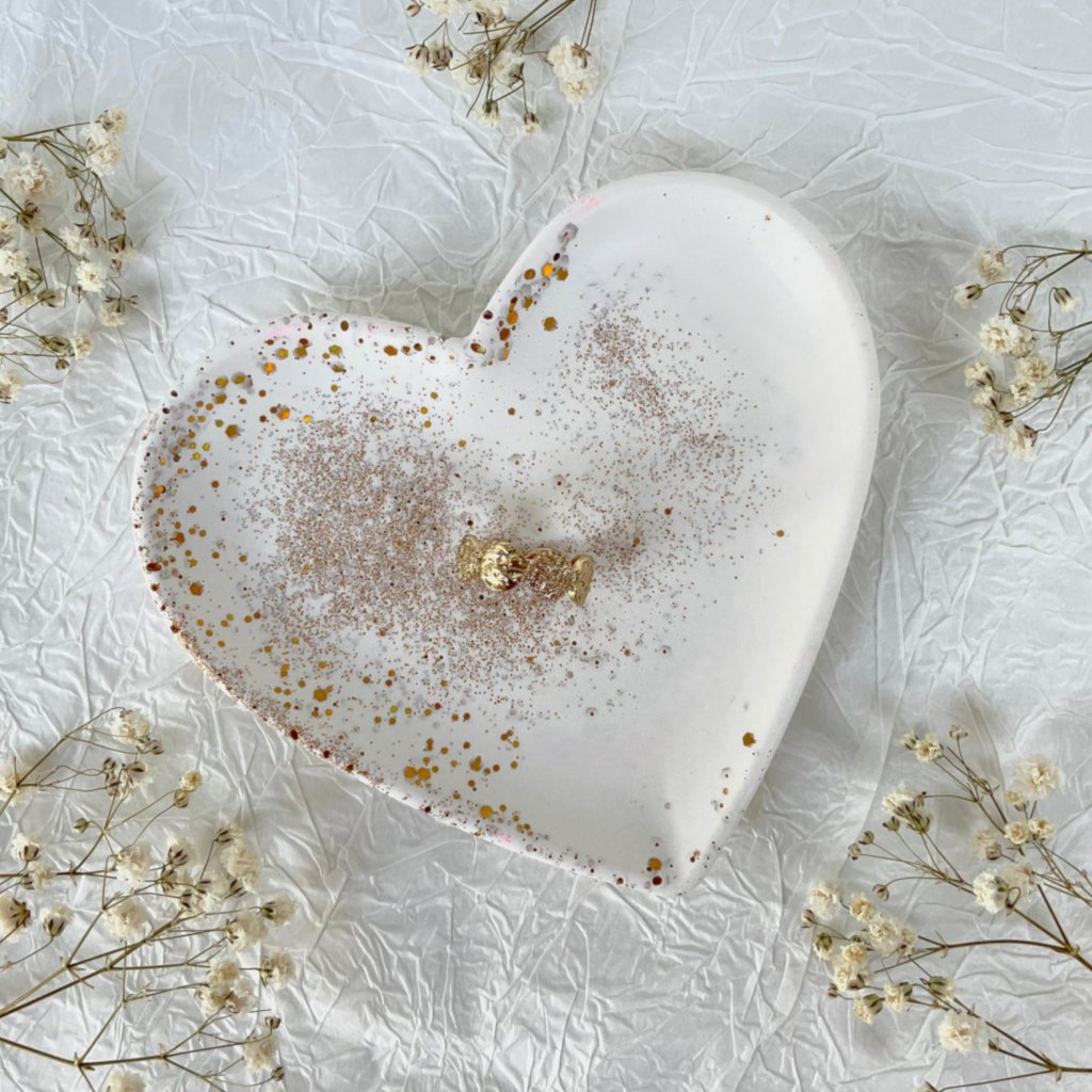 Tento nádherný tácek ve tvaru srdce přinese do vašeho domova dotek elegance a lásky. Perfektní jako dekorativní prvek na stůl či poličku, tácek na nejoblíbenější šperky, miska na jiné drobné předměty (mince, klíče apod.), nebo jako dárek pro milovanou osobu.