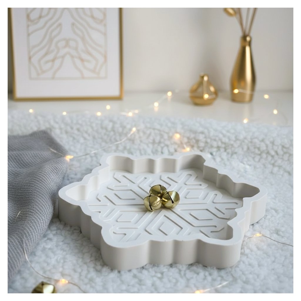 Tácek ve tvaru sněhové vločky je symbolem zimní elegance a čistoty. Ručně vyrobený z kvalitního jesmonitu zaujme precizním zpracováním, jemnými liniemi a nadčasovým designem, který vynikne v každém interiéru. Jeho minimalistický vzhled a decentní tvar působí harmonicky, klidně a dodá vašemu domovu hřejivou atmosféru i v nejchladnějších dnech.